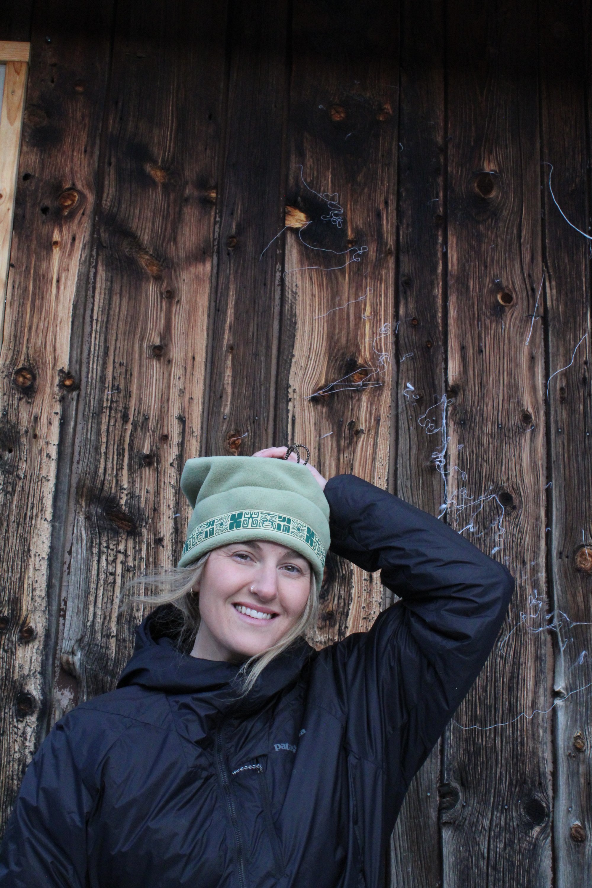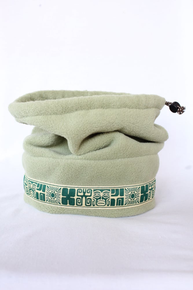This specific style is the Spring Hat. This design features a cinch at the top so that the hat can convert into a neck gator and slide over your head. This is a lighter, more breathable hat because it is primarily single layered with only two layers of fleece on the fold.