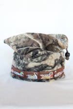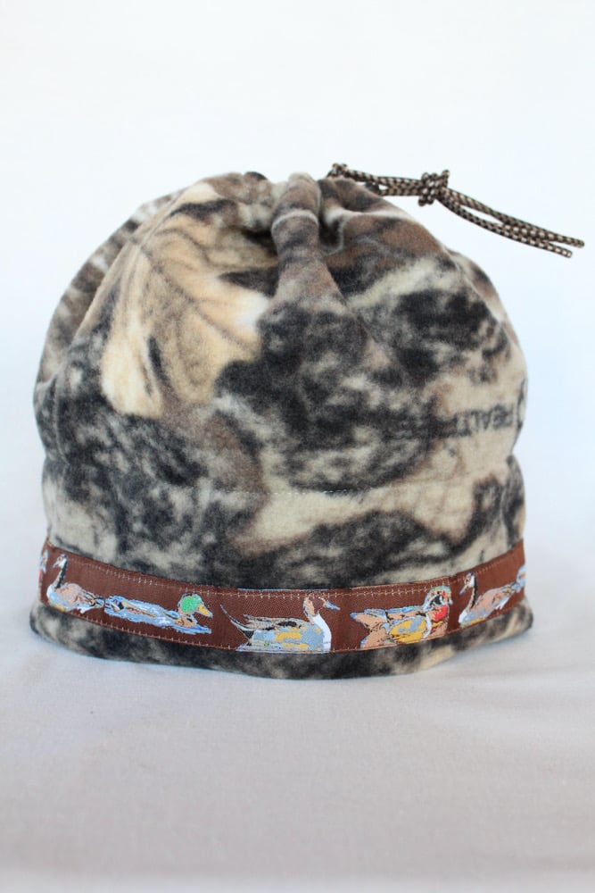 This specific style is the Spring Hat. This design features a cinch at the top so that the hat can convert into a neck gator and slide over your head. This is a lighter, more breathable hat because it is primarily single layered with only two layers of fleece on the fold.
