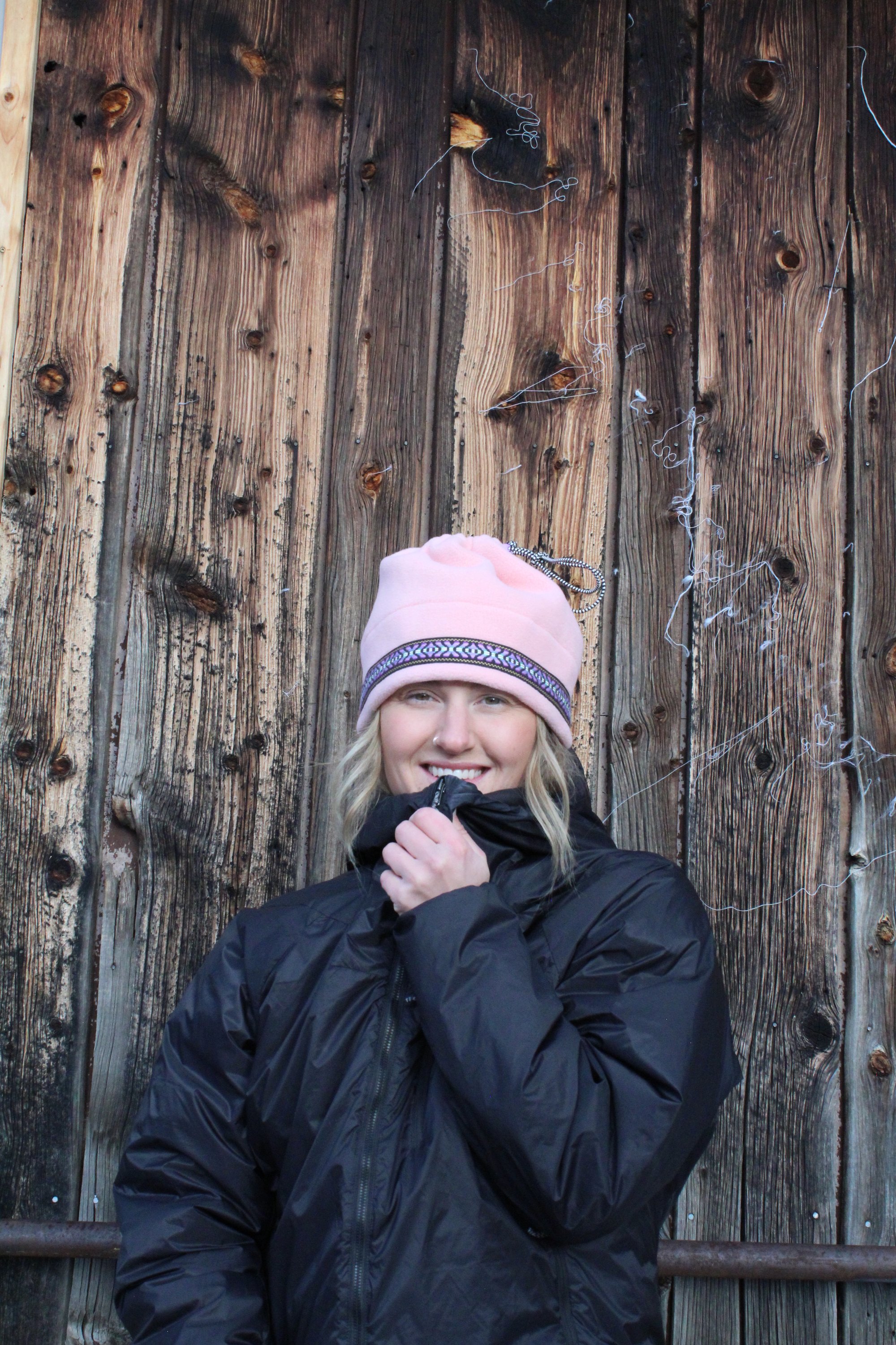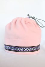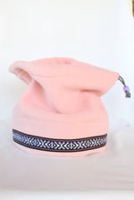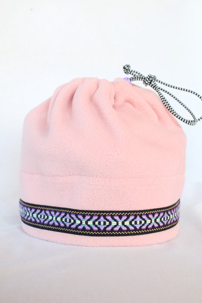 This specific style is the Spring Hat. This design features a cinch at the top so that the hat can convert into a neck gator and slide over your head. This is a lighter, more breathable hat because it is primarily single layered with only two layers of fleece on the fold.