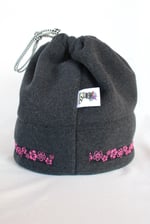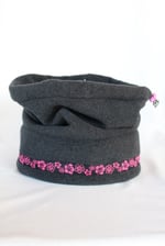 This specific style is the Spring Hat. This design features a cinch at the top so that the hat can convert into a neck gator and slide over your head. This is a lighter, more breathable hat because it is primarily single layered with only two layers of fleece on the fold.