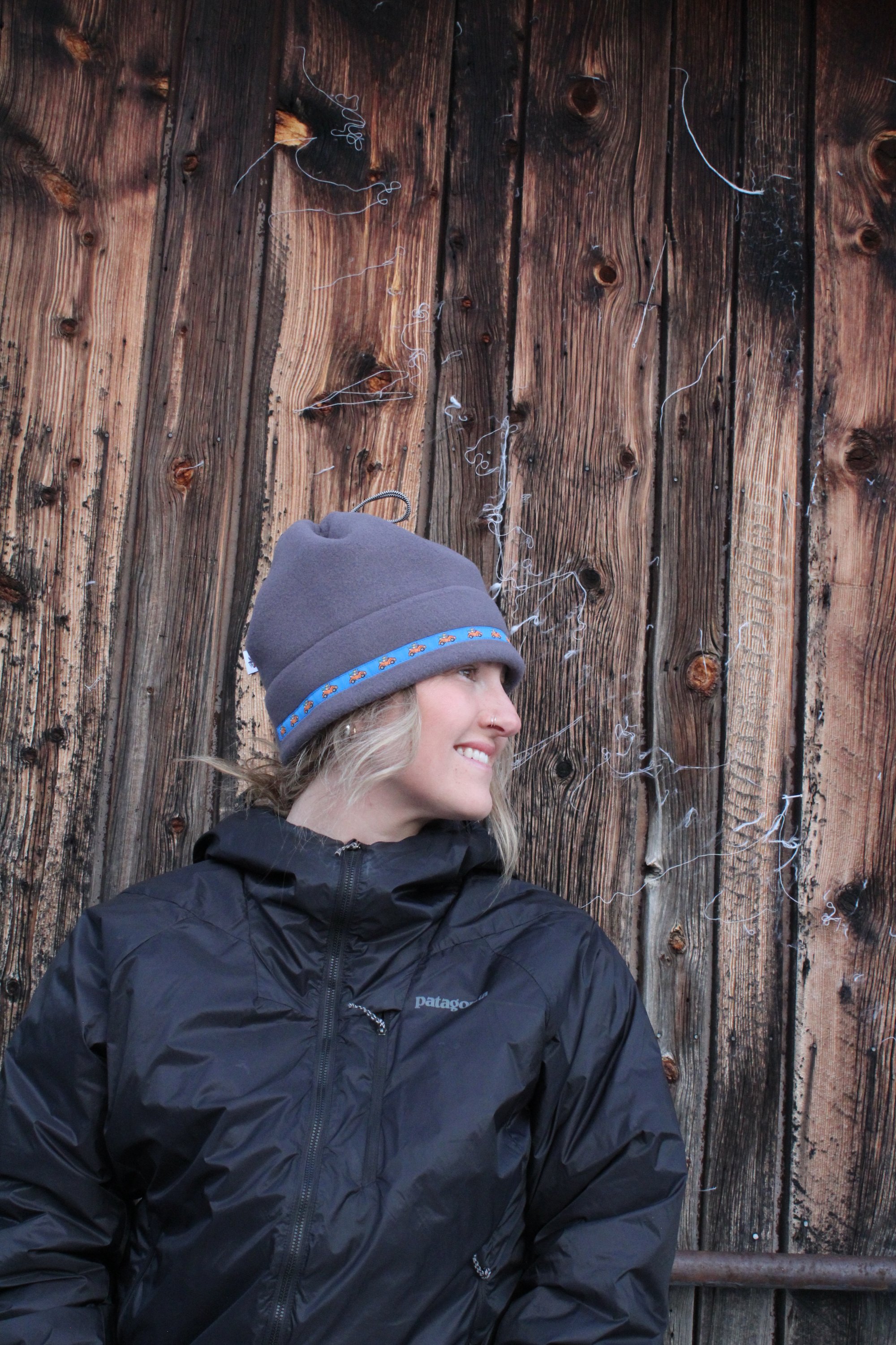 This specific style is the Spring Hat. This design features a cinch at the top so that the hat can convert into a neck gator and slide over your head. This is a lighter, more breathable hat because it is primarily single layered with only two layers of fleece on the fold.