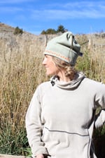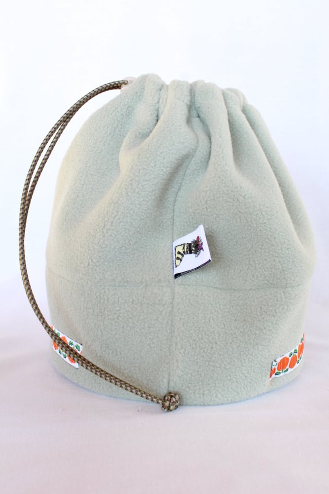 This specific style is the Spring Hat. This design features a cinch at the top so that the hat can convert into a neck gator and slide over your head. This is a lighter, more breathable hat because it is primarily single layered with only two layers of fleece on the fold.