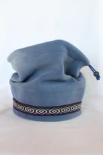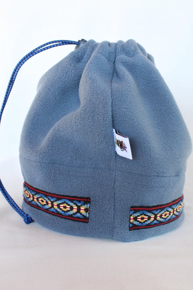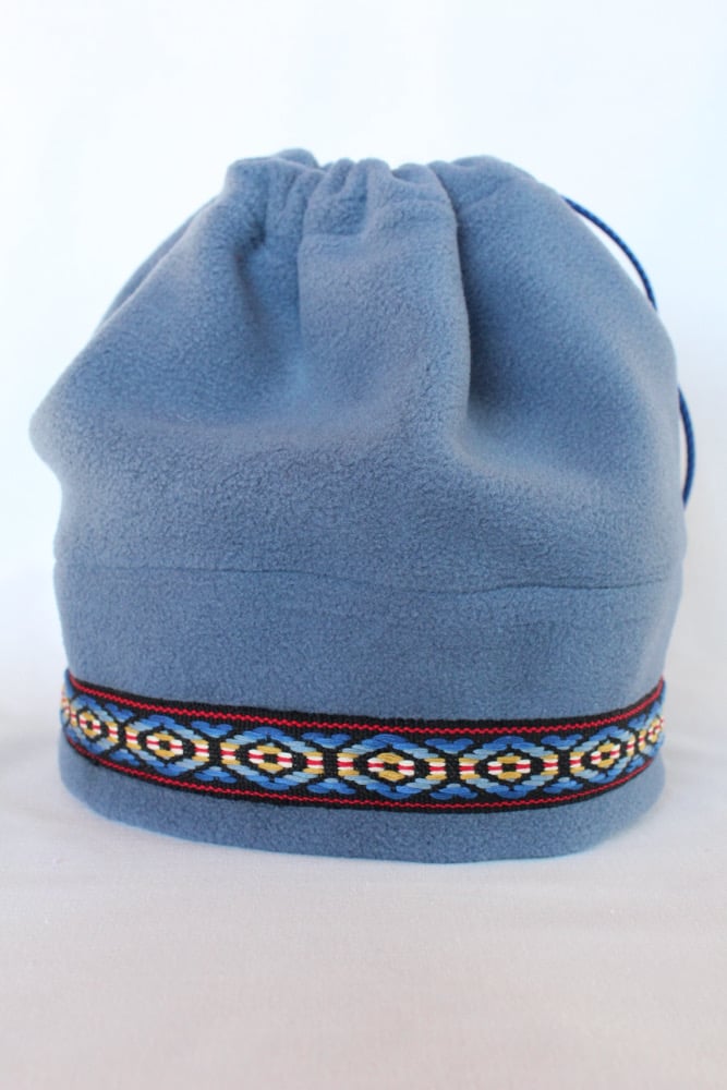 This specific style is the Spring Hat. This design features a cinch at the top so that the hat can convert into a neck gator and slide over your head. This is a lighter, more breathable hat because it is primarily single layered with only two layers of fleece on the fold.