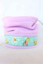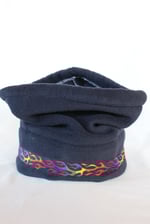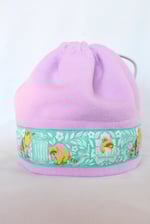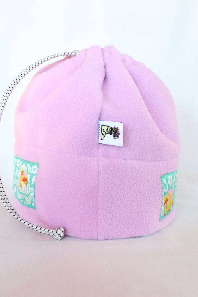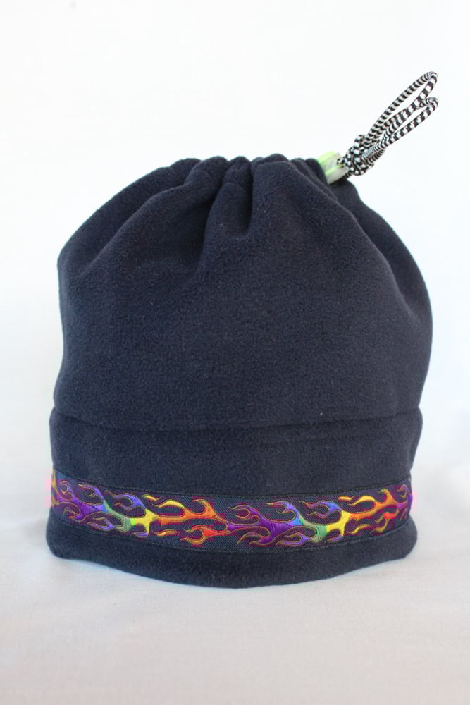 This specific style is the Spring Hat. This design features a cinch at the top so that the hat can convert into a neck gator and slide over your head. This is a lighter, more breathable hat because it is primarily single layered with only two layers of fleece on the fold.