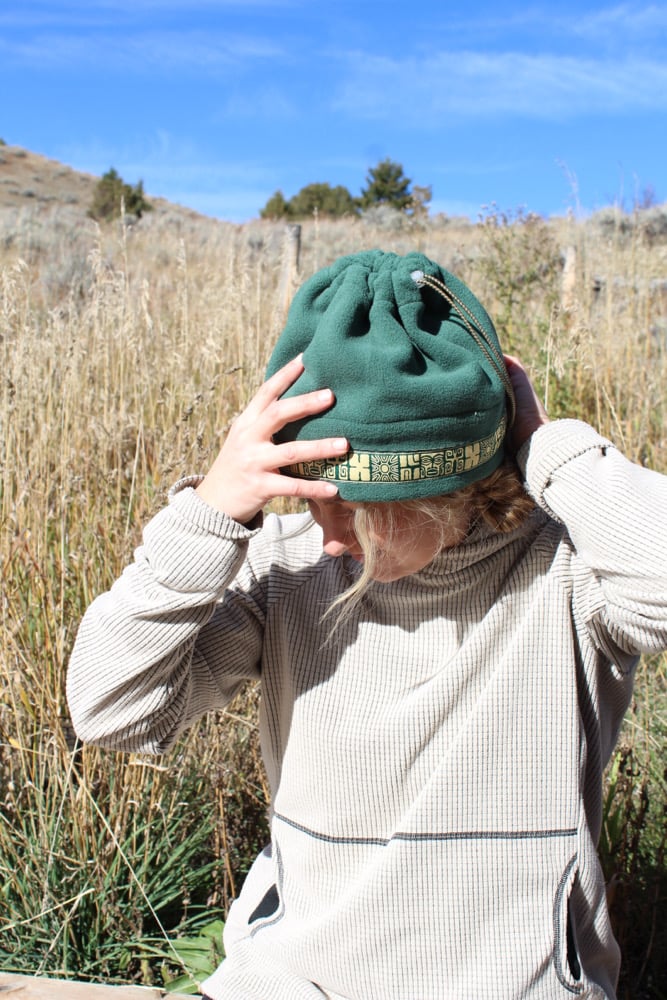 This specific style is the Spring Hat. This design features a cinch at the top so that the hat can convert into a neck gator and slide over your head. This is a lighter, more breathable hat because it is primarily single layered with only two layers of fleece on the fold.