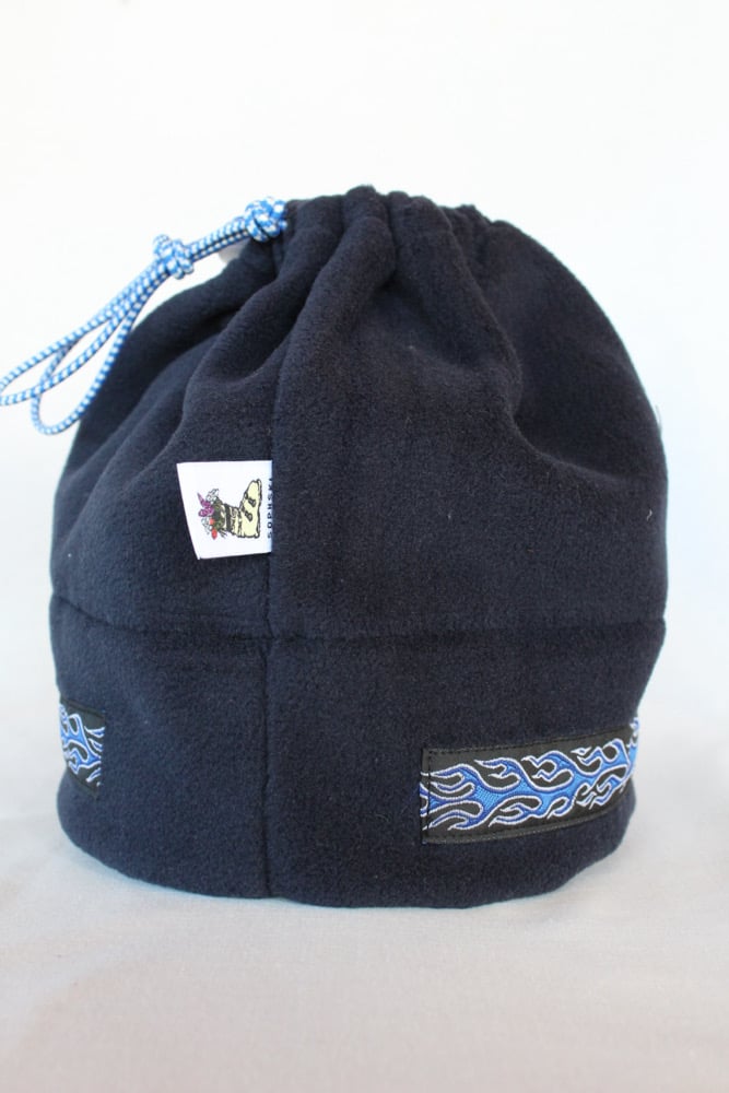 This specific style is the Spring Hat. This design features a cinch at the top so that the hat can convert into a neck gator and slide over your head. This is a lighter, more breathable hat because it is primarily single layered with only two layers of fleece on the fold.