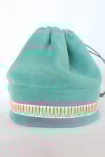 This specific style is the Spring Hat. This design features a cinch at the top so that the hat can convert into a neck gator and slide over your head. This is a lighter, more breathable hat because it is primarily single layered with only two layers of fleece on the fold.