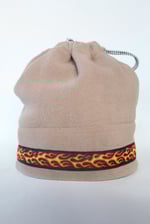 This specific style is the Spring Hat. This design features a cinch at the top so that the hat can convert into a neck gator and slide over your head. This is a lighter, more breathable hat because it is primarily single layered with only two layers of fleece on the fold.